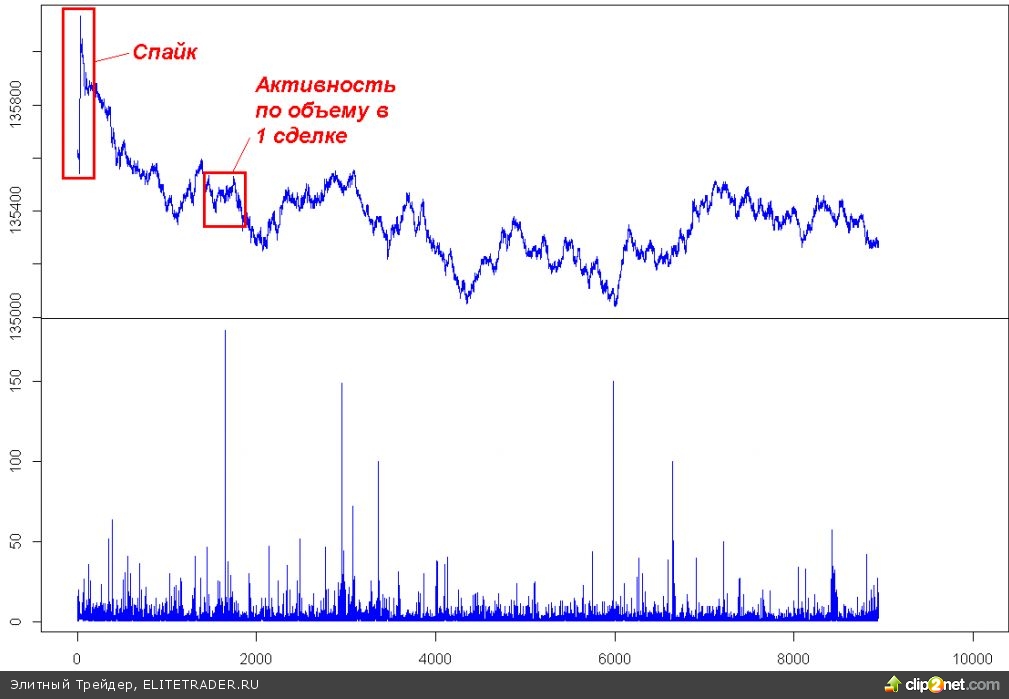 2 сделками прошли 364 контракта. Конечно, не так много, как бывало в «переливных» сделках. Но речь про микроструктуру. Именно на ней показана данная аномалия.