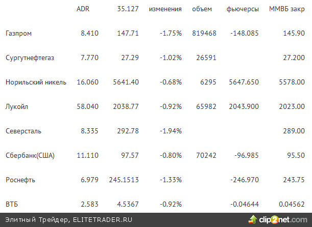 ADR в США 13.02.14 (Северсталь, Роснефть, ВТБ в Лондоне ) и закрытие вечерних фьючерсов в России. Цветами (или знаками +-) далее изображен характер разницы по сравнению с закрытием вечерних фьючерсов ночью накануне. Евро/доллар ))1.3614 в 7.45 четверга))1.3631 в 7.53 среды))