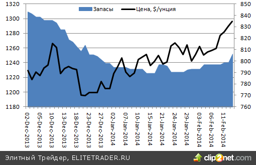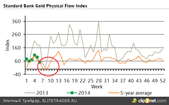 Свое веское слово сказали и ETF-фонды. Стабилизация их запасов в январе-феврале свидетельствовала о прекращении процесса перелива золота с запада на восток. А тут еще крупнейший биржевой фонд SPDR Gold Shares сообщил о притоке в 7,5 тонны 13 февраля, ставшим максимальным с 4 октября 2012 года, когда маховик сокращения запасов ETF, явившийся одним из главных бичей драгметалла в 2012-2013 годах, еще не был запущен.