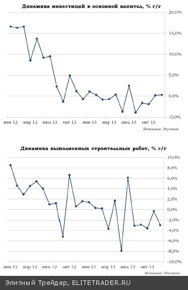 Ставка на низкую базу предыдущего года не оправдалась. Значение декабря 2013-го оказалось выше аналогичного за 2012-й год лишь на 0,3%. Суммарно за все двенадцать месяцев ― на 0,3% ниже. Схожая ситуация и в строительстве. Объем выполненных работ уменьшился на 1,5%.