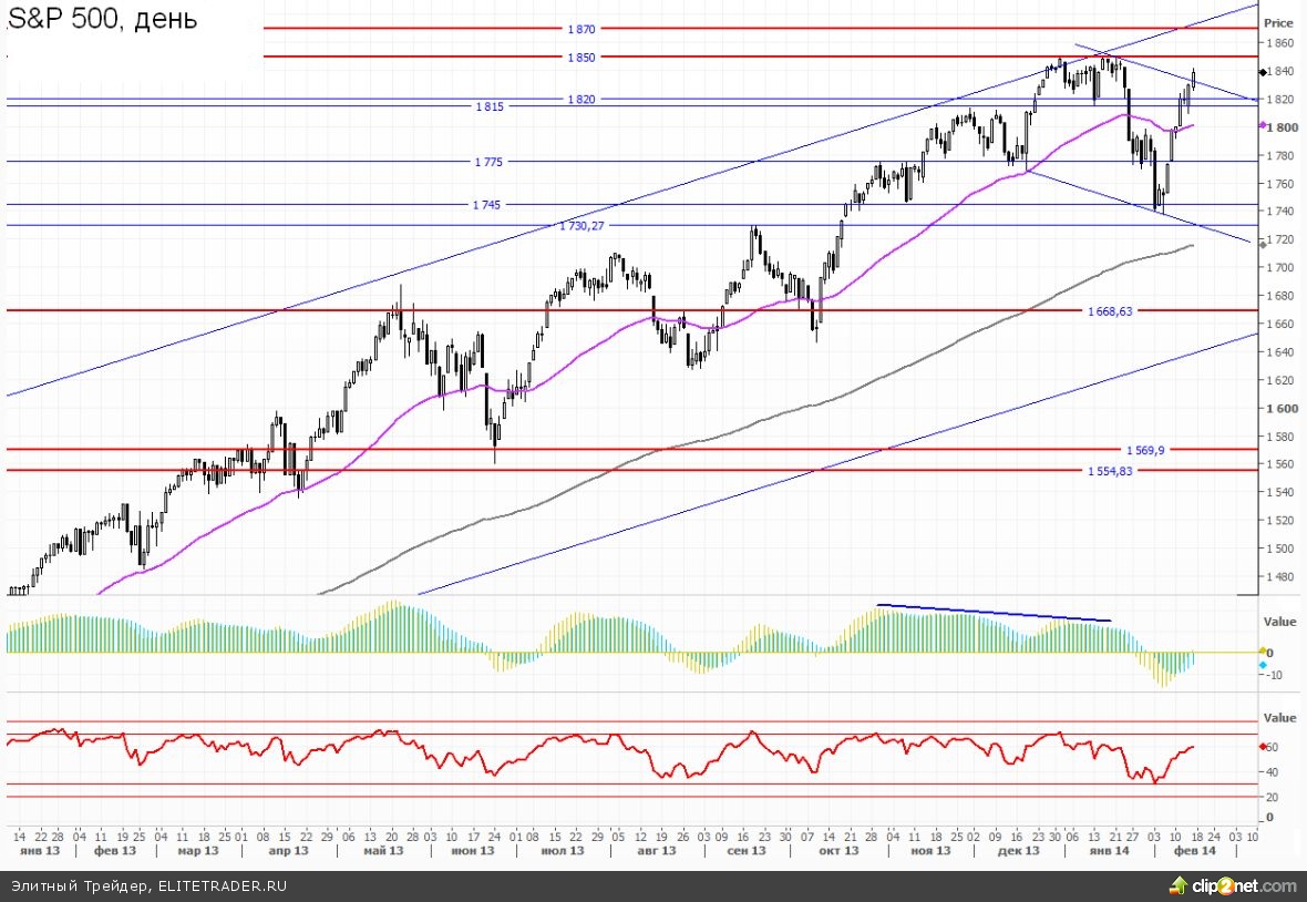 Тем не менее общий настрой остается бычьим и после небольшой паузы в росте движение наверх, скорее всего, будет продолжено. В качестве среднесрочной цели роста в первую очередь выделяется район 1870-1875. Есть еще «технические» шансы запрыгнуть и на 1900-1905, но они несколько меньше, чем вероятность разворота от 1875.