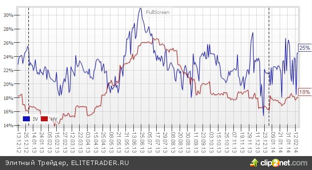 В свою очередь разница между подразумеваемой и исторической волатильностиью RIH4 сейчас составляет целых 6 пунктов, что говорит о существенной переоцененности опционов, которая обычно сглаживается путем роста рынка.