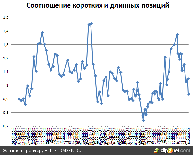 Обратив внимание на открытые юридическими лицами позиции по RIH4, можно заметить, что настроения крупных игроков за прошедшие 2 дня еще более углубились в сторону покупок. Соотношение коротких и длинных позиций на 14 февраля составило 0,936, тогда как 12-го было 1,05.