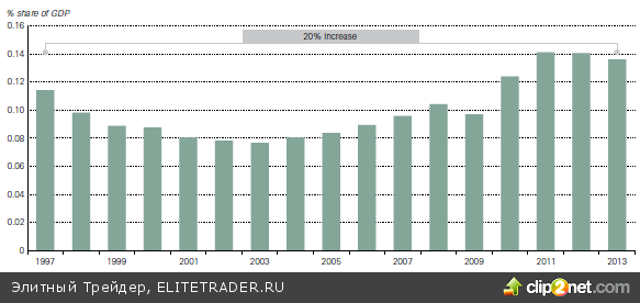 Следует отметить что, несмотря на обусловленное падением цен увеличение объемов потребления золота в сфере ювелирного дела до максимальной отметки с 2008 года, соотношение показателя с мировым ВВП в 2013 году снизилось.