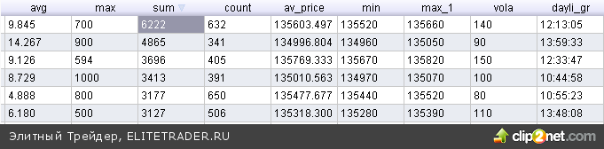 Далее привожу справочно агрегацию ключевой статистики по РИ сегодня по часам торгов: