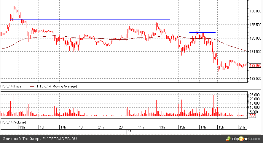 Конечно, это могло быть простое совпадение, так как гипотезу статистически не проверял. Лишь обращу внимание, что 17 февраля прошел объем в 12:13:05 (после открытия Европы) в размере 6222 контрактов (резкое отклонение от ближайшего значения — 4885 контрактов, далее — 3 698 контрактов). То есть, есть некоторая аномальность. Именно эта линия выделена вверху синим цветом на свечах РИ. Именно в эту точку сегодня «стукнули» в районе 13 часов.
