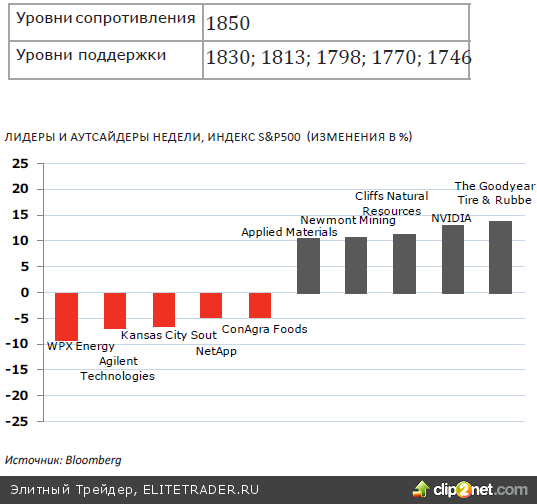 Вопреки нашим опасениям индекс SnP500 не задержался в районе 1800 пунктов. На прошлой неделе он рос четыре сессии из пяти (небольшим отступлением была отмечена только среда) и в пятницу остановился менее чем в 1% от январского исторического максимума (1848,38 пунктов по закрытию, 1850,84 пункта внутри дня)