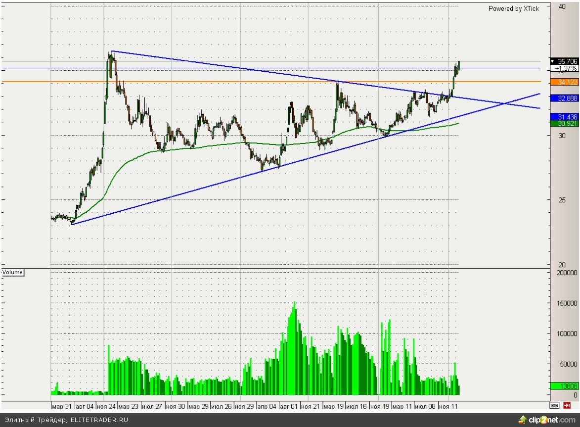 Остановить снижение рубля в ближайшее время могут, пожалуй, лишь повышенные интервенции от ЦБ при пересечении границ валютного коридора. Поэтому до начала укрепления вполне можно ждать ослабления в район 36 рублей за доллар.