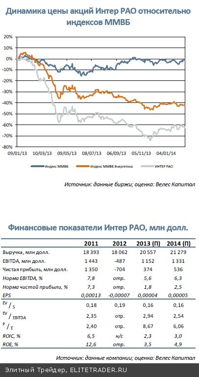 Группа Интер РАО представила свои финансовые результаты по РСБУ по итогам 2013 г. Несмотря на то, что результаты компании по РСБУ не являются ориентиром для консолидированных финансовых показателей, мы считаем, что увеличение убытка в 3,7 раз, до 53,69 млрд руб. является негативным фактором, способным усугубить отношение крупных инвесторов к акциям Интер РАО. Основной причиной убытка являются неденежные списания: «Расходы от переоценки котируемых ценных бумаг» (19,9 млрд руб.) и «Резервы под обесценение не обращающихся на ОР ЦБ финансовых вложений» (37,3 млрд руб.). Полученный убыток станет (по заявлениям руководства компании) основной причиной отсутствия дивидендов по итогам 2013 г. Согласно дивидендной политике, компания должна направлять не менее 5% от чистой прибыли (при отсутствии убытка). Последний раз дивиденды выплачивались в 2011 г. Также председатель правления Интер РАО отметил, что компания начнет выплачивать дивиденды, начиная с 2016 г., после окончания основных инвестиционных проектов. При этом, в ноябре 2013 г., правление компании обдумывало решение о выплате рекомендуемых правительством дивидендов (для госкомпаний) в размере 25% от чистой прибыли по МСФО. Отсутствие дивидендов в ближайшие 3 года при условиях предстоящей заморозки тарифов заметно снижает привлекательность акций Интер РАО.