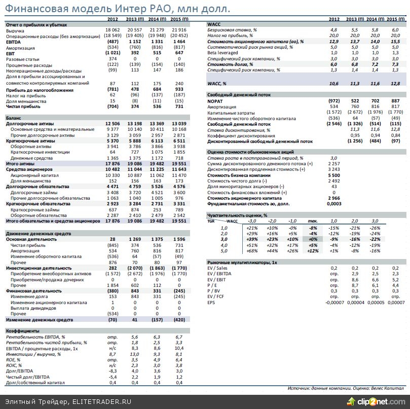 Руководством компании была обозначена инвестпрограмма на 2014-2016 гг., размер которой составит 173 млрд руб. При этом менеджмент группы в ноябре обозначил объем программы на 2014-2018 гг. в размере 176,6 млрд руб. Исходя из прошлого и текущего объема, размер инвестиций был увеличен на 13,4%. Мы считаем, что ключевым моментом для инвестиционной программы является сумма, которую компания сможет получить от продажи 40% пакета Иркутсэнерго. Интер РАО рассчитывает на продажу по цене 48,6 млрд руб. Однако, исходя из рыночной оценки компании, данный пакет стоит чуть более 14,12 млрд руб., что в 3,4 раза больше заявленной суммы. Основными претендентами на покупку акций Иркутскэнерго являются Роснефтегаз и мажоритарный акционер Иркутскэнерго - Евросибэнерго. В случае продажи Роснефтегазу существуют риски того, что вырученные средства могут пойти на финансирование строительства ГЭС в Киргизии. Исходя из наших прогнозов по денежным потокам и продажи акций Иркутскэнерго по заявленной сумме, дефицит инвестпрограммы может составить 10-15 млрд руб. С учетом возможного займа коэффициент чистый долг/EBITDA компании не превысит 2,4, что не является критичным уровнем.