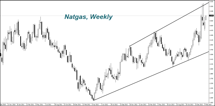 Стоимость природного газа (Natgas) достигла трёхнедельного максимума. Из-за холодной погоды увеличился спрос на отопление в США и запасы газа снизились до минимума за последние десять лет. Новые недельные данные по запасам выйдут в четверг. Мы полагаем, что природный газ находится в долгосрочном растущем тренде, так как его цена в США почти в три раза ниже, чем в Европе. Прогнозы по увеличению добычи сланцевого газа в Америке могут не оправдаться.