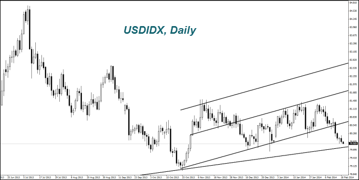 Индекс доллара (USDIDX) упал во вторник благодаря слабым данным по американскому рынку недвижимости от Национальной ассоциации строителей жилья (NAHB) и снижению производственного индекса Нью-Йорка Empire Manufacturing за февраль. Обычно на них обращают мало внимания, но в этот раз индекс делового оптимизма в секторе жилищного строительства от упал на рекордные 10 пунктов и опустился ниже отметки 50 пунктов впервые с мая прошлого года. Все негативные макроэкономические показатели вышедшие в декабре, январе объяснялись экстремально холодной погодой в США. Теперь же некоторые участники рынка стали опасаться реального замедления американской экономики. Сегодня в США в 13-30 GMT (0) выдут официальные данные по рынку недвижимости и индекс производственных цен за январь. После вчерашней информации от NAHB, инвесторы полагают, что они будут негативными.