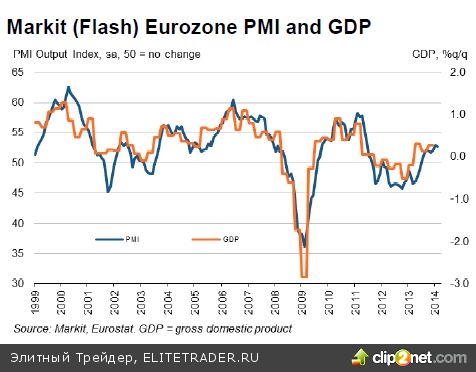 Между тем аналогичный показатель еврозоны показал, что, несмотря на небольшое замедление темпов роста, экономика региона находится все еще в очень неплохом состоянии. Деловая активность в производственном секторе в феврале добралась до отметки 53. При этом в сфере услуг активность выросла до уровня 51,7 с 51,6 в январе.
