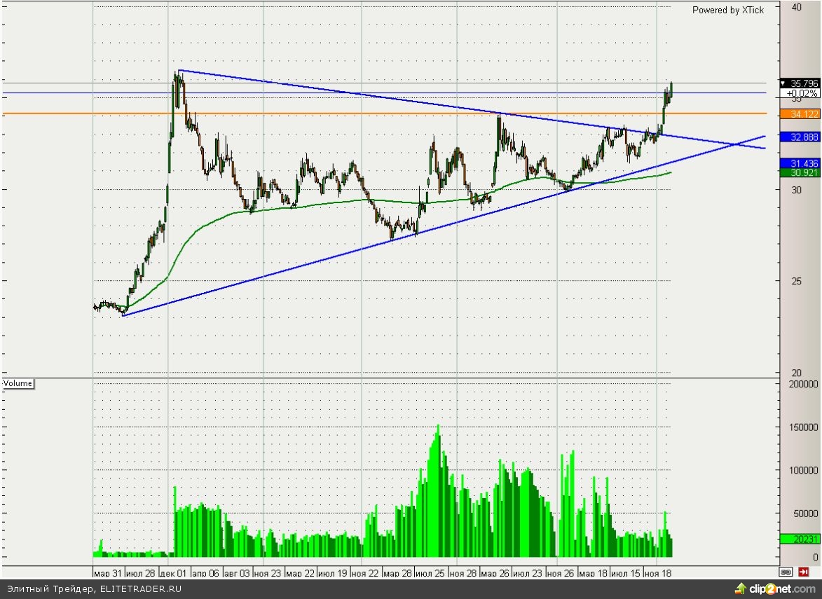 В частности для хорошего роста рубля нужна как минимум нормализация ситуации на Украине. Впрочем, в текущий момент есть также и целый ряд положительных факторов, которые будут сдерживать падение рубля. Это и высокие цены на нефть, и рост счета текущих операций и налоговый период в стране. Таким образом, высокая волатильность в паре доллар/рубль в ближайшем будущем сохранится и в зависимости от новостного фона мы можем увидеть как обновление максимальных значений, так и возвращение в район 35.