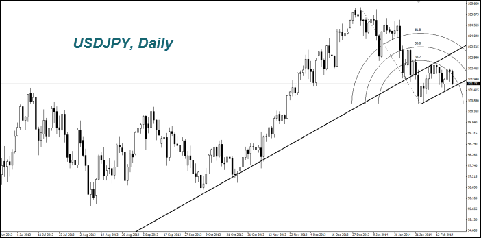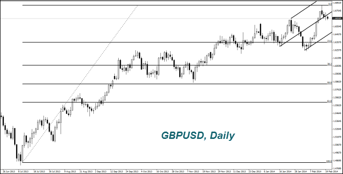 Макроэкономические показатели в США вчера были негативными. Количество новостроек в январе оказалось минимальным за три года. Инвесторы снизили прогнозы роста американского ВВП в первом квартале до 1,8-1,9%. Однако индекс доллара (USDIDX) вырос благодаря оптимистичным заявлениям представителей ФРС. Они подтвердили свою приверженность планам дальнейшего сокращения объёма выкупа американских гособлигаций, что подразумевает также сокращение долларовой эмиссии. Не исключёно повышение учётной ставки в текущем году. Сегодня в США в 13-30 GMT (0) выйдет инфляция за январь. Это очень важный показатель для валютного курса. Предварительные прогнозы, по нашему мнению, являются нейтральными. Если данные не совпадут с прогнозом, возможно сильное движение доллара США. Кроме инфляции выйдут и другие показатели. Подробнее об этом можно прочитать в разделе «Экономический календарь».