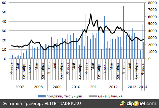 В январе, который традиционно считается сильным с точки зрения объемов продаж, Американский монетный двор реализовал 4775 тыс. унций серебра (-36,3% г/г). Показатель достиг минимальной отметки за последние четыре года. Две первые декады февраля также характеризовались умеренным спросом. Если его динамика сохранится, это выведет продажи на итоговые цифры аналогичного месяца прошлого года.