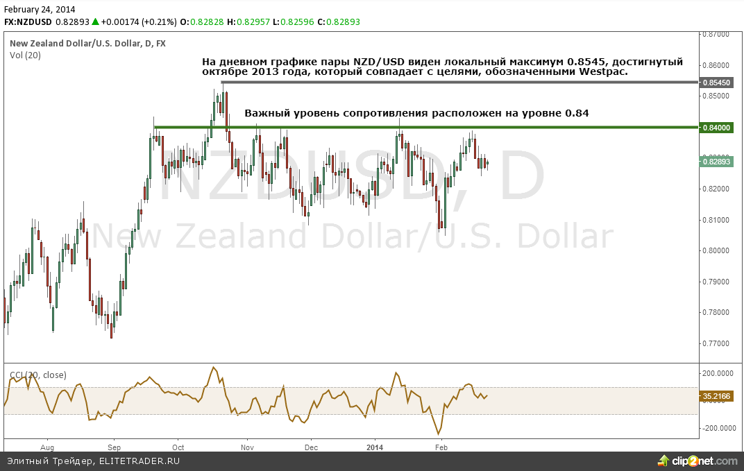 Внешним фоном, который влияет на ход торгов, станет отчет по замедлению темпов роста китайской экономики, изменения в которой очень сильно влияют на австралийскую и новозеландскую экономики. Сопротивлением для восходящего движения на паре NZD/USD выступает уровень $0.84. В перспективе аналитики Westpac предполагают возобновление позитивной динамики по паре, учитывая, что Резервный банк Новой Зеландии готов начать повышение процентной ставки, что может направить пару до уровня $0.8545. Некоторые аналитики считают, что РБНЗ повысит ставку уже 13 марта.