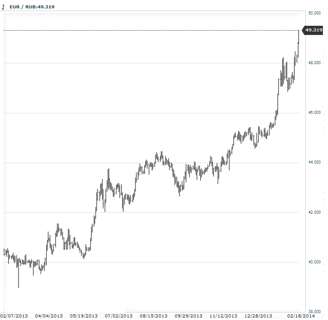 3. Также наблюдаются последствия беспорядков в Украине. С учётом связи двух стран и нарастающего напряжения в Киеве, существует риск того, что Россия будет ещё больше втянута в дела своего соседа. Такое соучастие может принять различные формы, и некоторые из них не слишком привлекательны для рынков капитала.
