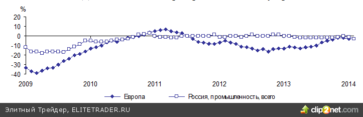 Отличием европейских бизнес обследований является проведение опросов только на промышленных предприятиях обрабатывающих производств, т. к. «добыча» для многих стран ЕС является не столь актуальной для оценки экономического состояния промышленности, как в России. При этом сравнение можно провести только по январским данным, т. к. официальные результаты бизнес обследований по странам Еврозоны ЕК пока еще не опубликованы.