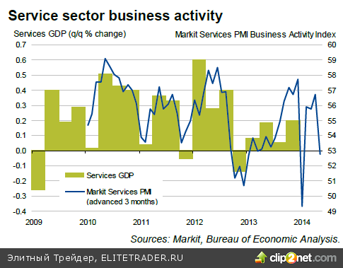 В свою очередь понижательным риском для российского фондового рынка является постепенное ухудшение состояния экономики США. Индекс деловой активности в сфере услуг страны показал в феврале существенное снижение в район 52,7 с 56,7 месяцем ранее.