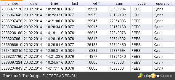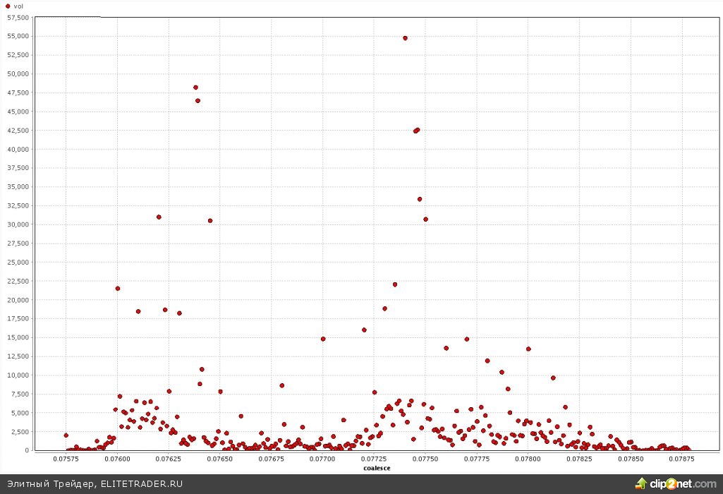 Одним словом, возврат выше 0,08 руб. себя не заставит ждать. Вот эта активность на тиках 20-21 февраля, громадные точечные сделки: