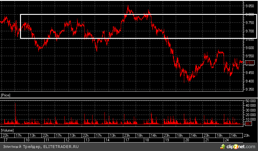 Во фьючерсе на акции Сбербанка России огромнейшее скопление объема в районе 9675-9700 пунктов. Огромная раздача объема в этой зоне: