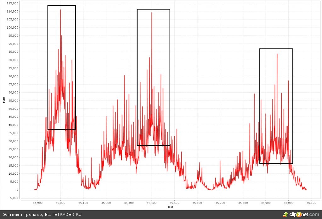 — cкопление объема на минимуме пятницы в районе 35 600 пунктов.