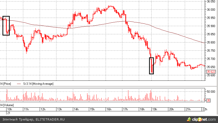 На свечах внутри дня она обозначена как импульс на открытии дневной и вечерней сессии: