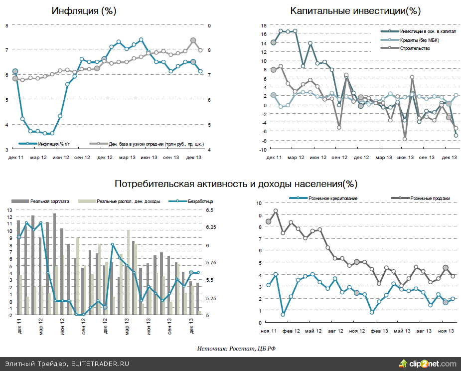 Старт 2014 г. для российской экономики выглядит невзрачным. Нам остается надеяться лишь на то, что январская статистика традиционно считается ненадежной и может ошибочно указывать на охлаждение темпов роста экономики. Пока же, если делать оценку на основе полученных данных, можно сделать вывод, что потребление выдыхается, а ожидаемой активизации инвестиций пока не происходит.