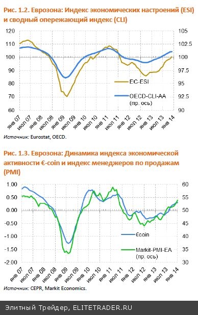 – индекс экономических настроений, основанный на опросах Европейской комиссии, показывавший положительную динамику на протяжении всего второго полугодия прошлого года, увеличился в январе 2014 г. до 104,7 пунктов, превысив долгосрочное среднее за 1990–2011гг. (оно принято за 100 пунктов);