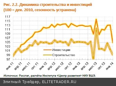Хотя конкретные данные о динамике инвестиций в январе еще будут пересмотрены, тем не менее факторы ухудшения понятны: инвестиционная активность в негосударственном секторе упала ещё в начале прошлого года, окончились олимпийские стройки, сократились бюджетные инвестиции и инвестиции госмонополий, принятие решений о выделении средств на конкретные проекты из ФНБ снова отложены.