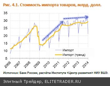 В январе 2014 г. импорт продемонстрировал рост, несмотря на девальвацию, которая еще больше ускорила бегство капитала из России.