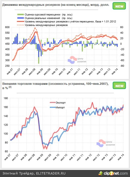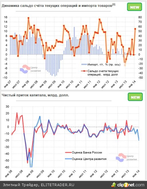 [2] Данные по сальдо счёта текущих операций за период с октября 2013 г. по январь 2014 г. и данные по импорту и экспорту товаров за январь 2014 г. являются оценками Института «Центр развития» НИУ ВШЭ.