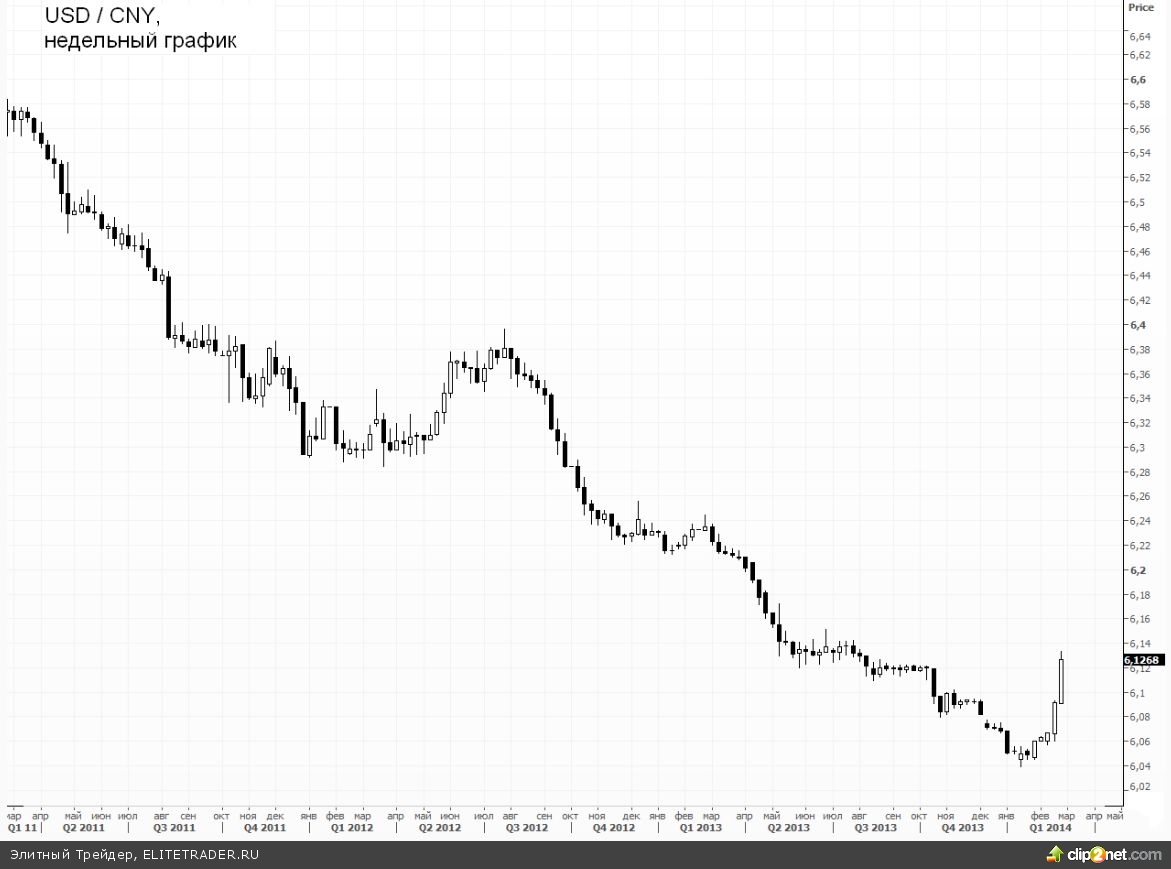 Продолжая валютную тему, отметим массовые разговоры по поводу китайского юаня. Валюта КНР еще на прошлой неделе начала обесцениваться относительно быстрыми темпами. Пока речи не идет о масштабной девальвации, однако слом затяжной тенденции, когда юань демонстрировал поступательное укрепление, уже начинает настораживать инвесторов. Боязнь слабого юаня связана с потенциальным сокращением спроса на сырьевые товары со стороны одного из крупнейших потребителей мира. Кроме того есть опасения и по поводу возможных проблем с ликвидностью. Масштаб ослабления пока незначительный, но для инвесторов это однозначно негативный сигнал.