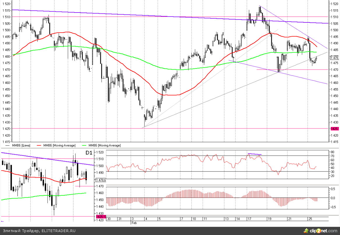 Индекс ММВБ: Актуальность боковика 1425-1510 сохраняется