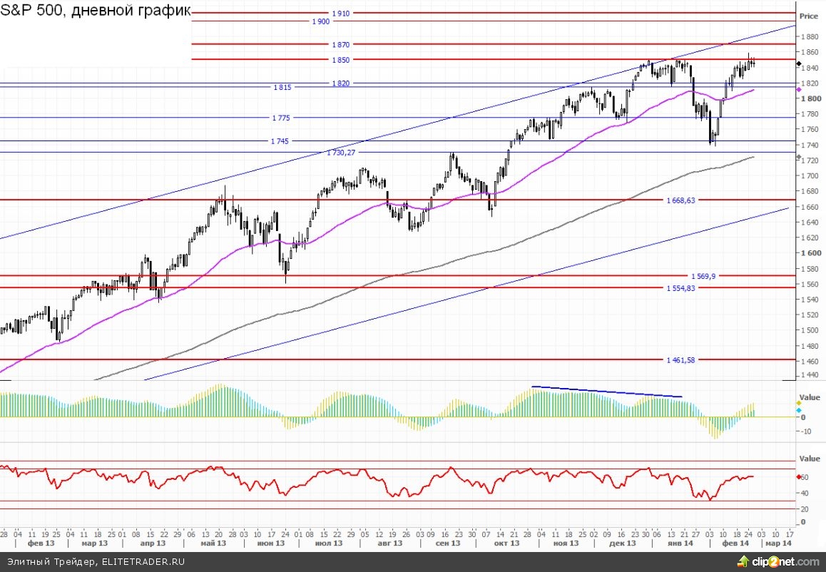 В данный момент фьючерсный контракт на SnP 500 торгуется с повышением на 0,23% около отметки 1846.