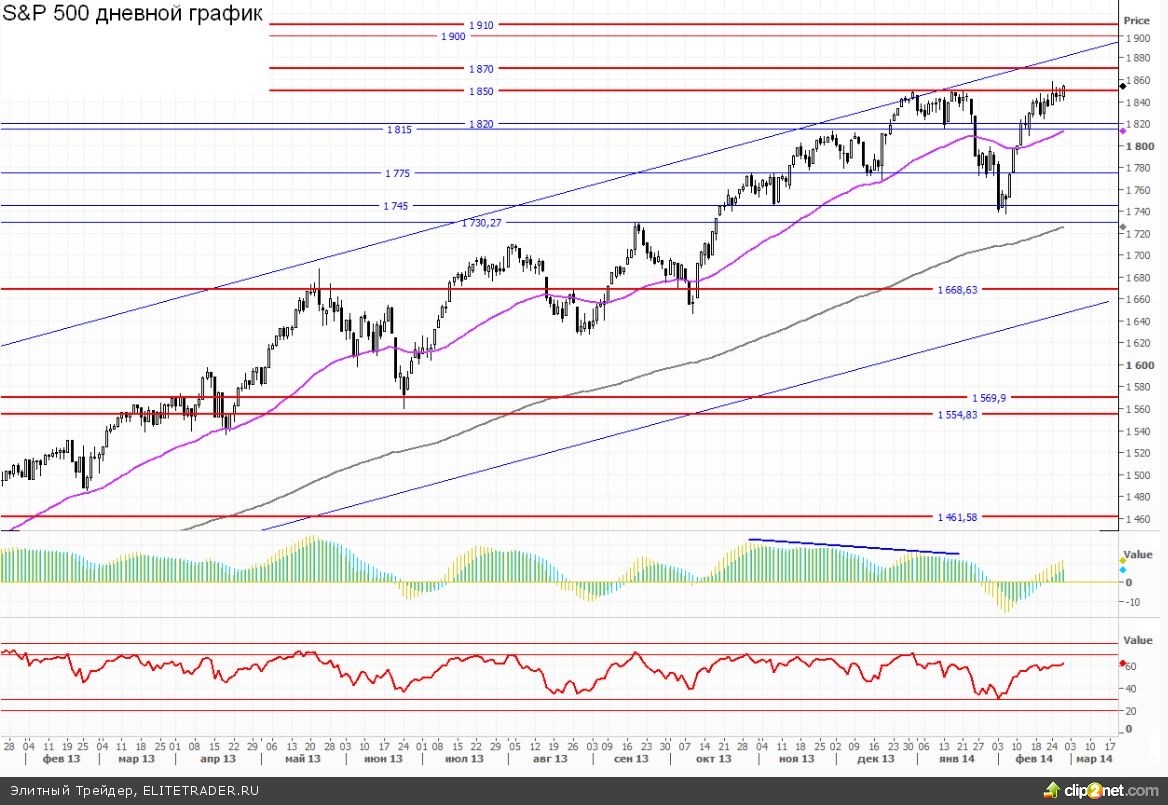 После нескольких дней консолидации в районе исторических максимумов под уровнем сопротивления 1850 пунктов, индекс SnP500 все же продолжил рост, пробив данный рубеж, и закрывшись вчера на рекордном уровне 1854,29 пункта.