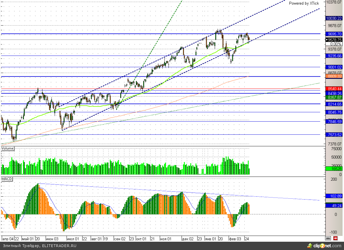 Тем временем Dax продолжает торговаться в восходящем канале. Сейчас он подобрался к нижней его границе и вполне может возобновить рост в скором времени. Поэтому сигнал здесь положительный.