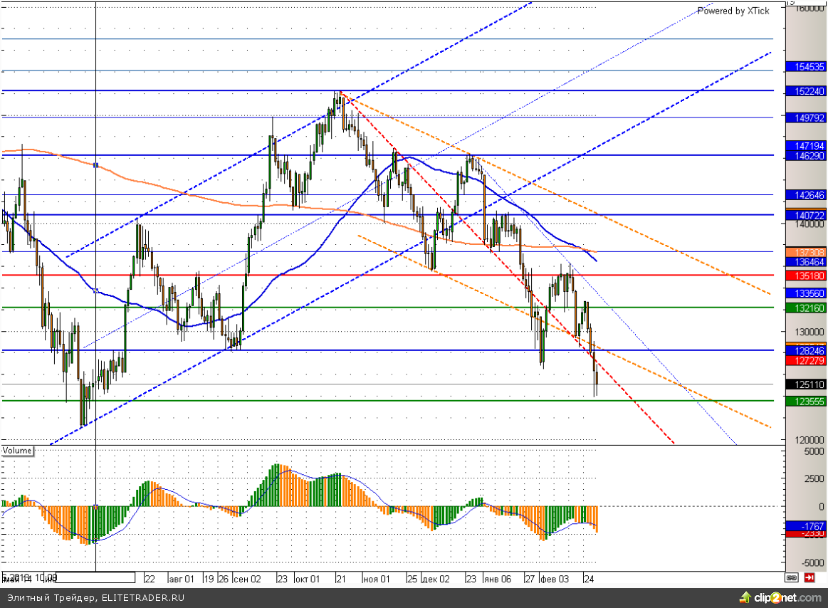 Таким образом, основные поводыри сейчас дают умеренный сигнал на покупку. Совершать эту покупку между тем желательно лишь после пробоя уровня 127000.