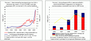 Правда, при этом наш Минфин потеряет доход от эмиссии рублей. Но он не такой уж большой. Хотя в процентом отношении к ВВП (примерно 0.3%) Минфин РФ зарабатывает сеньоража чуть больше, чем казначейство США на долларе. Это не удивительно – рубль высокоинфляционная валюта, и темпы его «порчи» выше, а взимаемый таким образом «налог» - больше. Любопытно, что значительную часть дохода от эмиссии рубля Банк России получает как раз из-за океана – в виде процентов, выплачиваемых казначейством США на валютные резервы России (ну что-то еще зарабатывает на валютном рынке, покупая валюту «по низу», а продавая «по верху»). Хотя некоторые почему-то считают, что выпуская (раньше) рубль под американские, а не под русские займы (т.е. по принципу валютной палаты) наша казана чуть ли не отдавала этот доход заграницу. Но нет, это все равно, кого кредитует Центробанк, «обеспечивая» печатаемые деньги - банки, свое или чужое правительство. Для ЕЦБ, например, «свое» правительство - вещь вообще довольно абстрактная.
