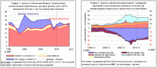 Негатив текущего счета должен быть профинансирован чистым притоком капитала, считая его с изменением валютных резервов ЦБ. Официальные прогнозы исходят из того, что будет профинансирован чистым притоком частного капитала, начиная с 2013 года. В зависимости от цены нефти возможны его колебания. При низкой цене нефти дефицит текущего счета будет финансироваться, главным образом, сокращением резервов ЦБ РФ. Высокая цена приведет также и к большему притоку капитала и к значительному росту резервов. Ожидается, что в центральном сценарии, с ценой нефти в районе 100 долл., приток капитала будет достаточен, чтобы поддерживать умеренный рост ЗВР.