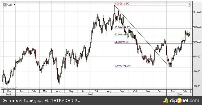 Высокая динамика и многочисленные технические прорывы в течение февраля привели на сырьевой рынок покупателей в лице хедж-фондов. Начиная с первой недели января, ставки на рост по 24 торгуемым в США сырьевым товарам увеличились на 59%. Тенденция достигла своей кульминации 18 февраля, когда общая чистая длинная позиция достигла максимальной с апреля 2011 года отметки. Это был беспрецедентный случай, когда рынок покупателя сформировался в 23 из 24 сырьевых сегментов. В условиях таких активных покупок некоторые сырьевые товары в конечном итоге могут скорректироваться в случае появления каких-либо признаков снижения потенциала или изменения фундаментальных факторов, особенно на рынке нефти WTI, которой не хватает всего несколько тысяч контрактов, чтобы чистая длинная позиция достигла рекордного значения по сравнению с летом прошлого года. В процентном соотношении с общим открытым интересом позиция выглядит еще более перегруженной, так как мы подошли к уровням, которые в последний раз наблюдались в периоды повышенного геополитического риска, например война в Ливии в 2011 году, ядерные санкции в отношении Ирана в 2012 году и прошлогодний кризис в Сирии из-за химического оружия и перебои в поставках из Ливии.
