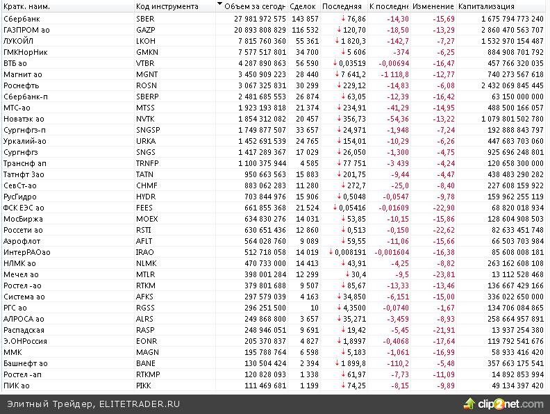 — 22 сентября 2011 года, когда индекс РТС от закрытия предыдущего дня 1503,32 пункта снизился до 1344,16 пунктов;