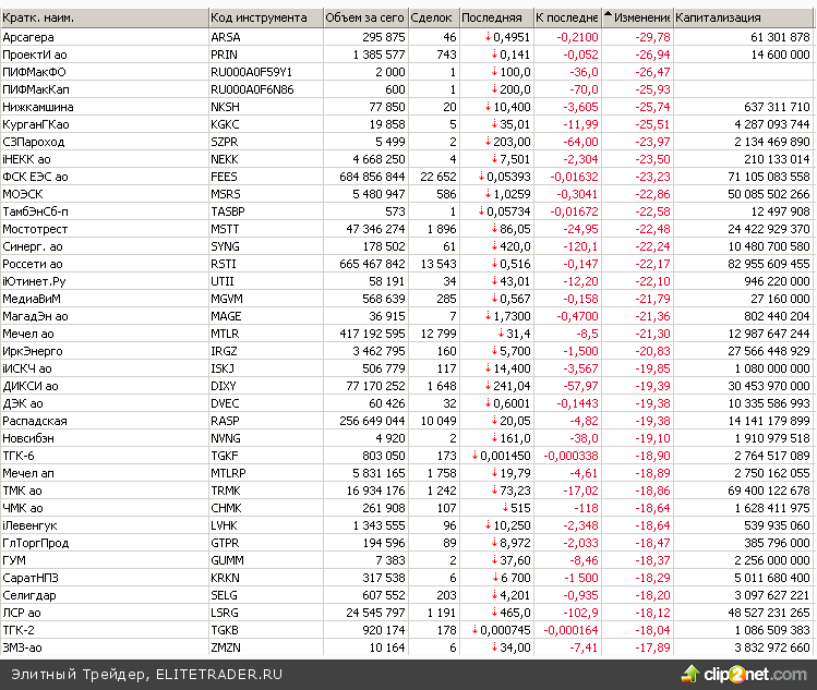 17:42 Лидеры роста и падения по версии сайта Финам.Ру: