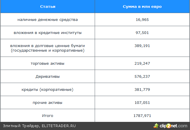 Если рассматривать структуру активов, то наибольшую долю (около 70%) занимают вложения в долговые ценные бумаги (государственные и частные), акции и деривативы (доля деривативов составляет более 32%, ни у одного крупного мирового банка по официальным отчетам нет такого аппетита к риску), на кредиты и другие вложения приходится 30 % активов. Deutsche bank уже давно не занимается кредитованием, а сосредоточен больше на инвестиционном банкинге, что в последние годы и приносит убытки.