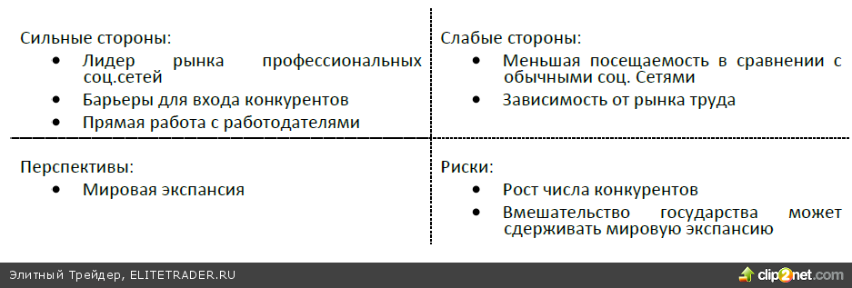 LinkedIn представляет собой бизнес ориентированная социальная сеть, где профессионалы могут общаться и искать новые карьерные возможности. Компания получает прибыль от 3 источников: продажа рекрутин-говых сервисов работодателям, продажа премиум рекламы, продажа премиальной подписки для работодателей и пользователей.