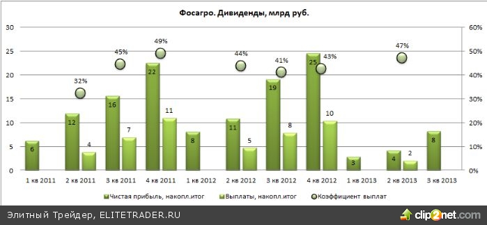 При этом Фосагро продолжает выплачивать хорошие дивиденды, направляя на эти цели в среднем 40-50% чистой прибыли.