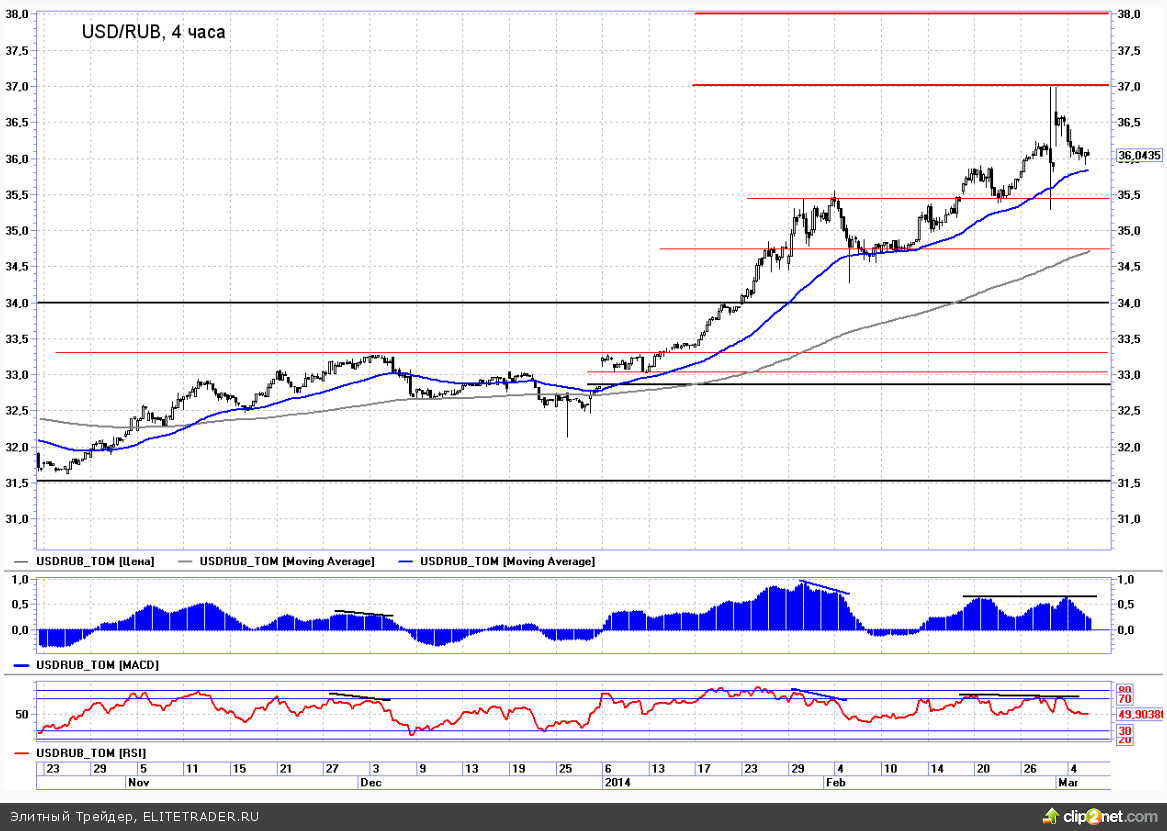 Что касается рубля, то взгляд не меняется. ЦБ РФ своими действиями ясно дал всем понять, что не намерен дальше терпеть ослабление по отношению к старшим валютам. Если никаких геополитических шоков не произойдет, то фактор потолка роста валюты, который обозначил регулятор, так или иначе, заставит рубль временно укрепляться. Другими словами покупать доллар и евро сейчас не очень выгодно, так как потенциал их подъема ограничен, а рублевые ставки сейчас высокие. Это взгляд на ближайшую перспективу, ну а что касается долгосрочных прогнозов, то по-прежнему отдаю предпочтение доллару. В связи с этим наиболее оправданная тактика в таких условиях, на мой взгляд, предполагает ожидание коррекции. Покупки валюты можно будет осуществить на более низких уровнях. О конкретных целях будем рассуждать лишь по факту закрепления USD/RUB ниже 36, что пока еще не случилось. Выделю лишь технические поддержки: 35,5 и 34,9.