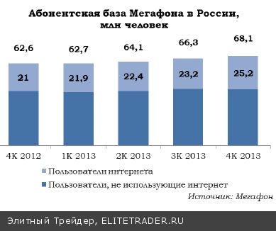 Доля пользователей услуг передачи данных выросла с 33,6% в 4К12 до 37,0% в 4К13;