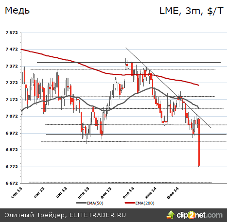 • Медь упала до восьмимесячного минимума на опасениях рынка относительно спроса на металл со стороны Китая, что разумно с учетом того, что показатель активности китайского промышленного сектора в феврале упал до 7-месячного минимума